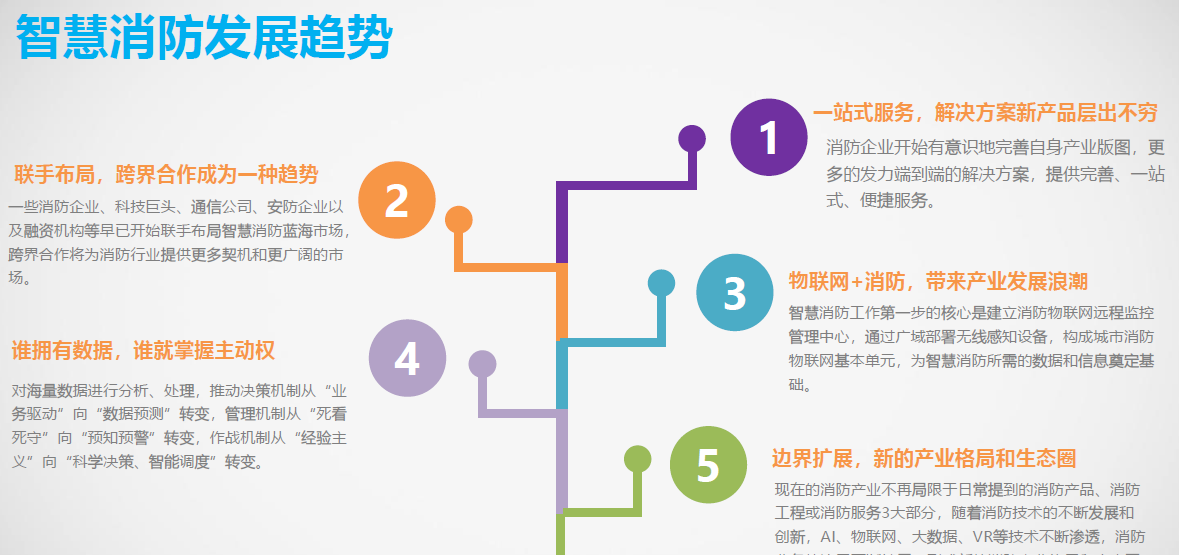 一些消防企業(yè)、科技巨頭通信公司安以及融資機構等早已開始聯(lián)手布局智慧消防藍海市場,跨界合作將為消防行業(yè)提供更多契機和廣闊的市場。
